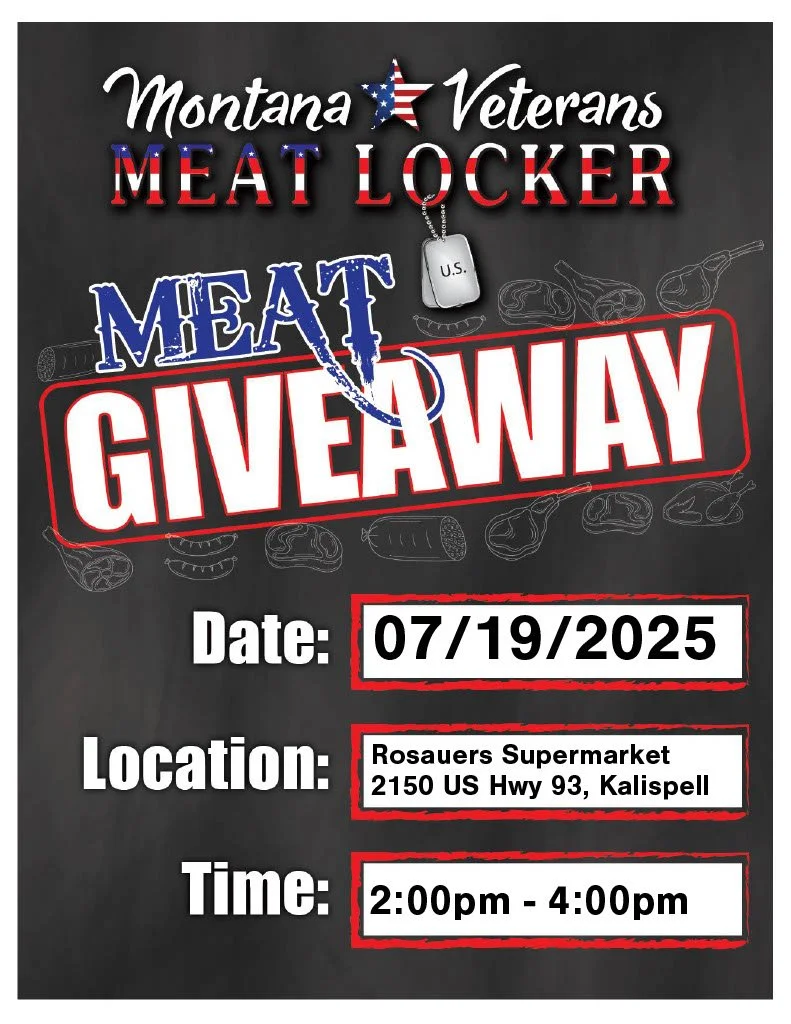 Montana Veterans Meat Locker is hosting a Meat Giveaway for veterans and their families on Saturday, July 19 at Rosauers Supermarket, Kalispell from 2:00 PM to 4:00 PM. Stop by and pick up free, high-quality meat—no registration required. This is just one small way to say thank you for your service and support the local veteran community. Supplies are limited, so arrive early!